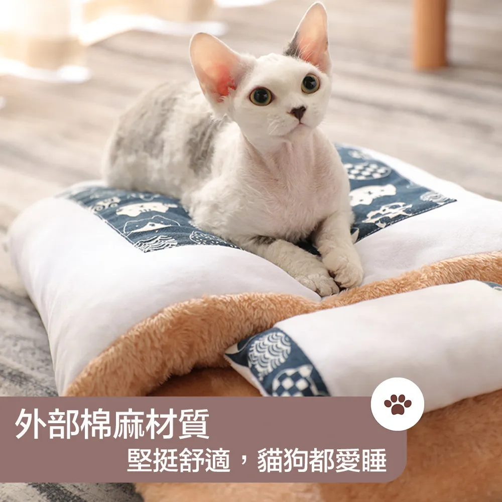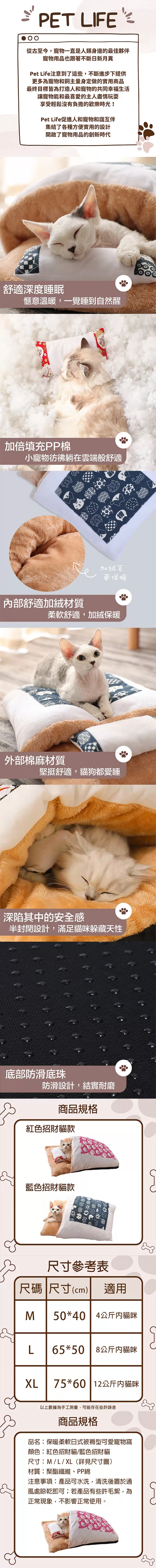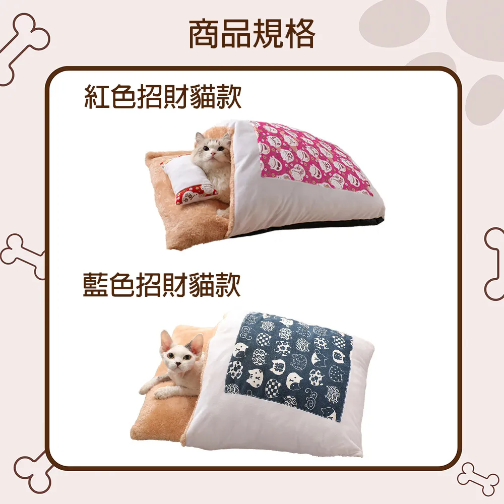 / 【Pet Life】保暖柔軟日式被褥型可愛寵物窩 藍色招財貓/紅色招財貓 XL