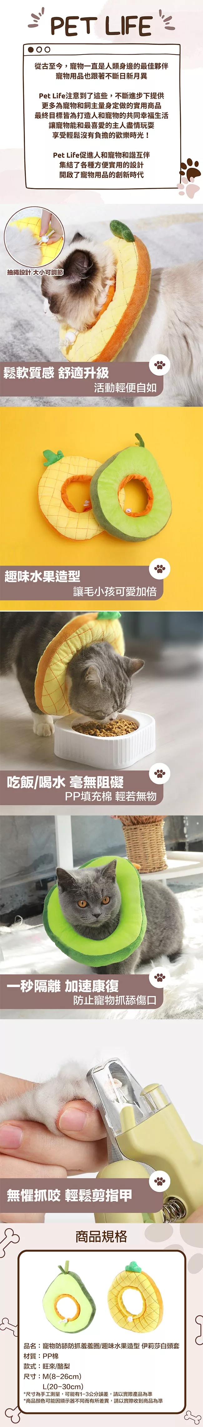 【PetLife】寵物防舔防抓羞羞圈/趣味水果造型 伊莉莎白頭套 M