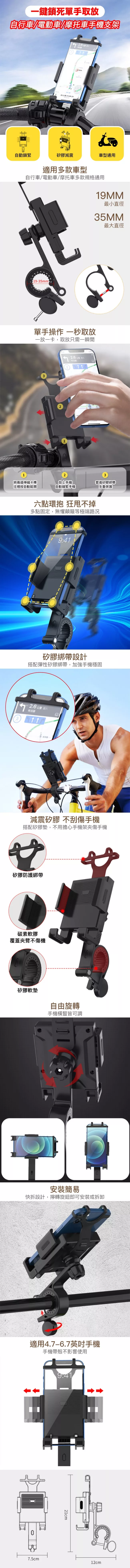 【Sense神速】單手取放橫豎皆可自行車/電動車/摩托車手機支架