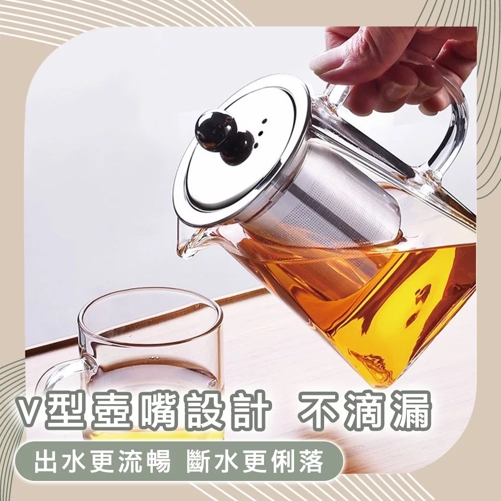 / 【Time Leisure 品閒】不鏽鋼耐熱玻璃濾茶壺/直火加熱沖泡方壺 350ml