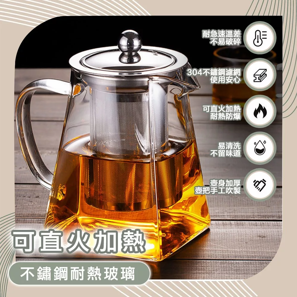 【Time Leisure 品閒】不鏽鋼耐熱玻璃濾茶壺/直火加熱沖泡方壺 350ml
