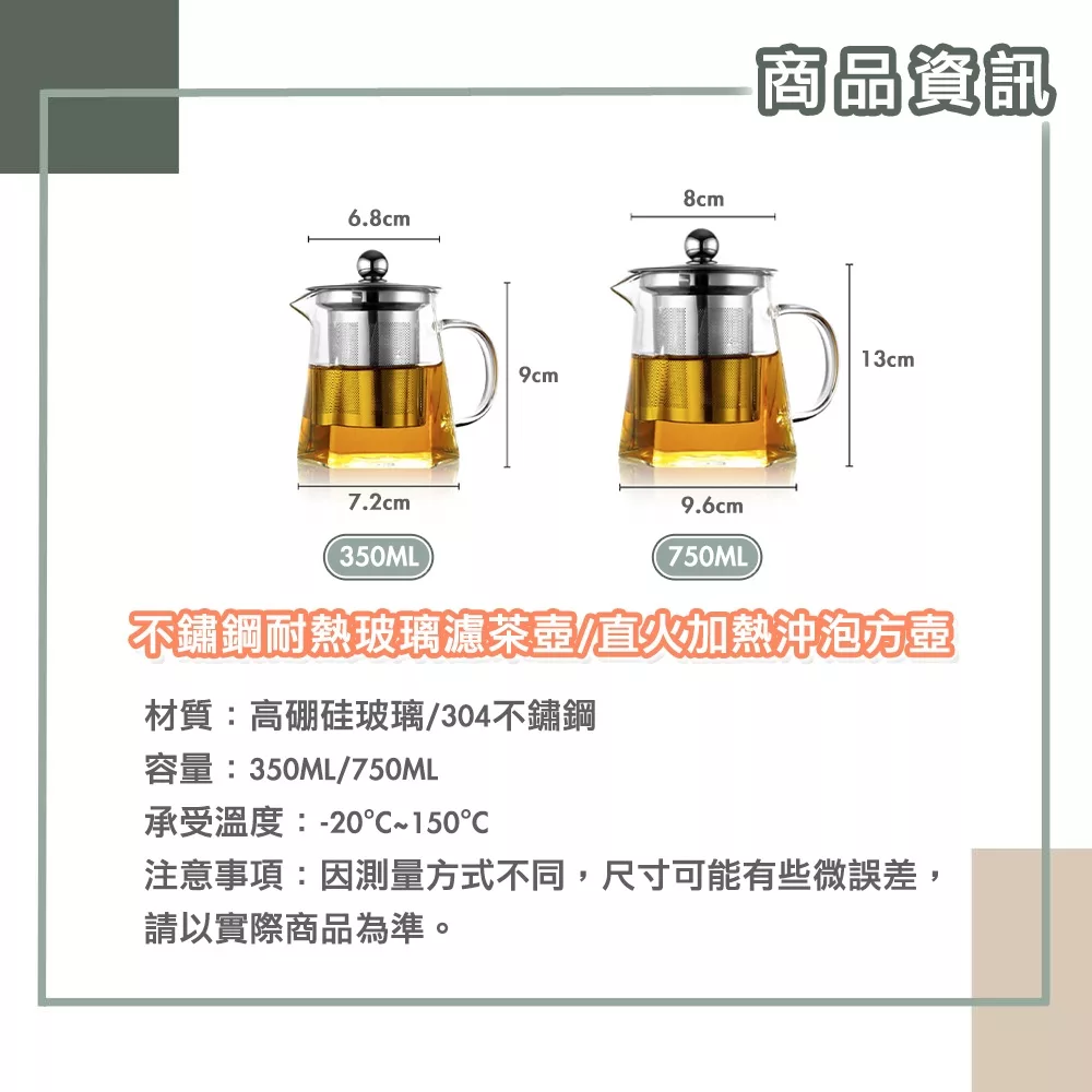 【Time Leisure 品閒】不鏽鋼耐熱玻璃濾茶壺/直火加熱沖泡方壺 350ml 數量