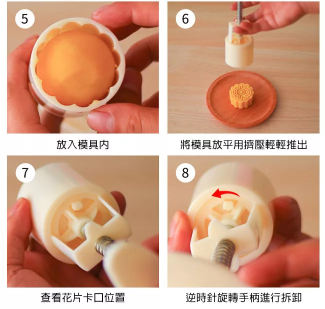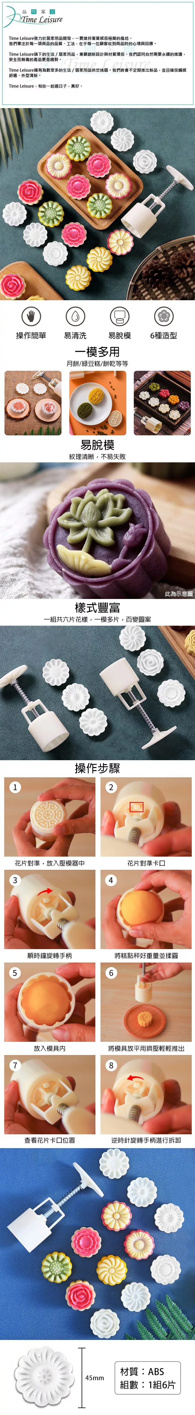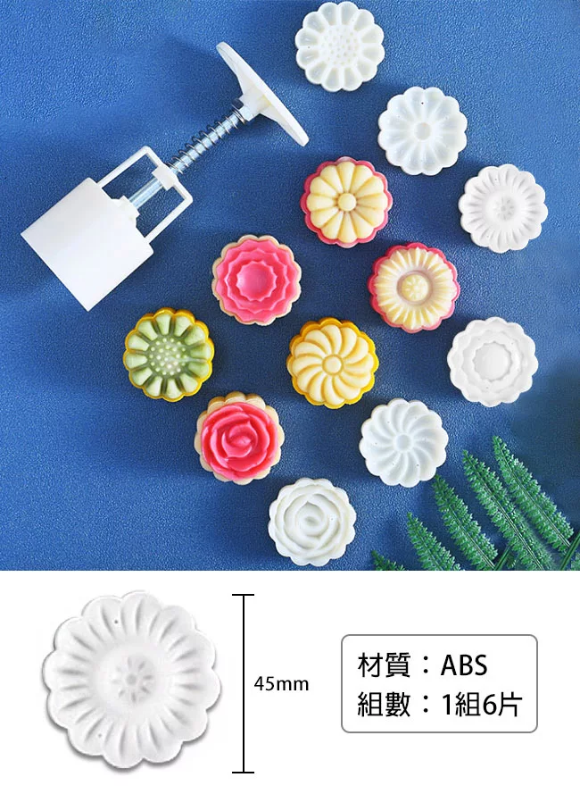 【Time Leisure 品閒】中式手壓糕點/綠豆糕/月餅模具 50g+6立體花片組