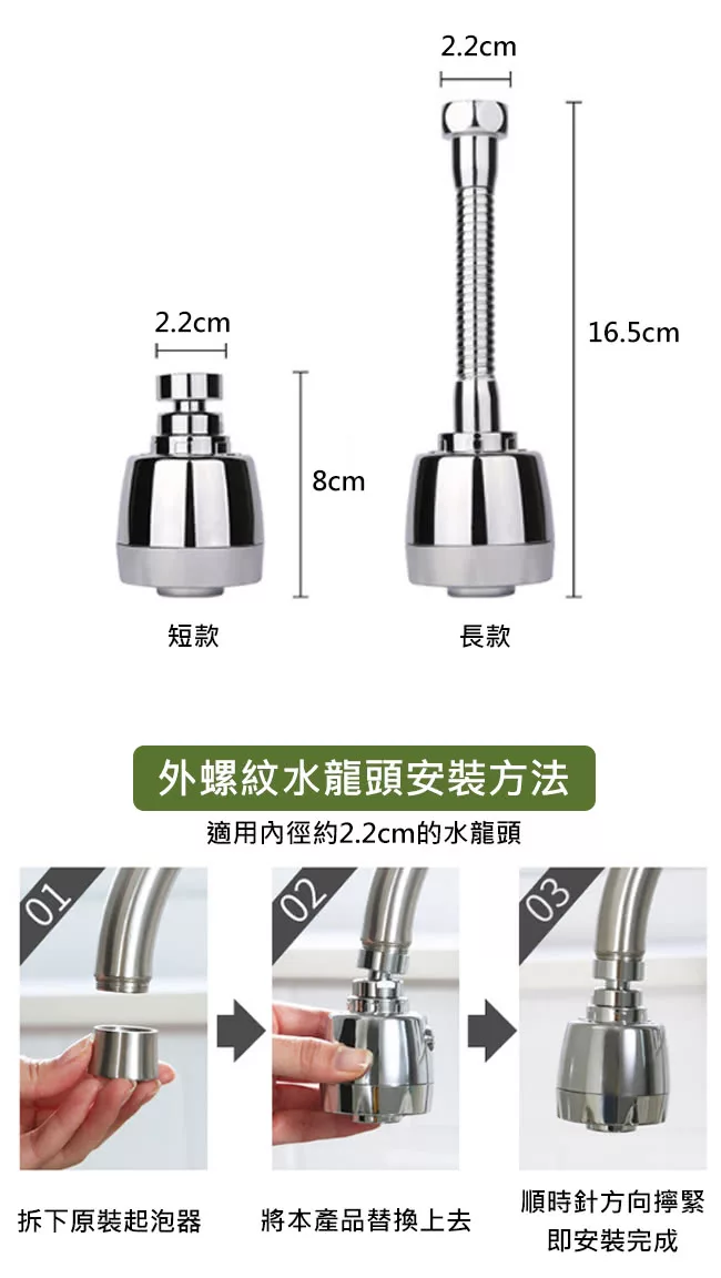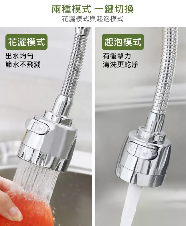 花灑/起泡模式,一鍵切換 360度隨意彎曲無死角清洗 不鏽鋼管多層結構,防止漏水 花灑與起泡模式,為您省下水費 做工優良精細,孔位出水均勻