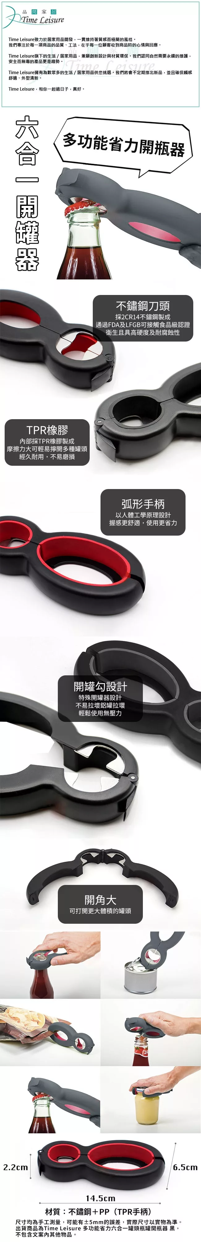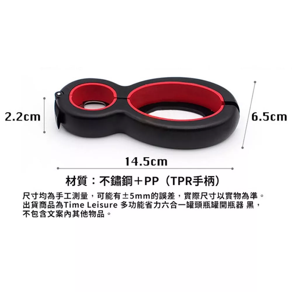 【Time Leisure 品閒】多功能省力六合一罐頭瓶罐開瓶器 黑
