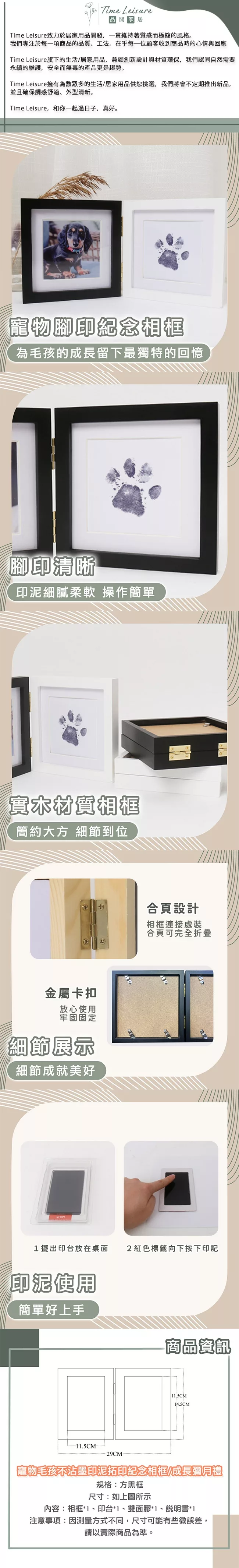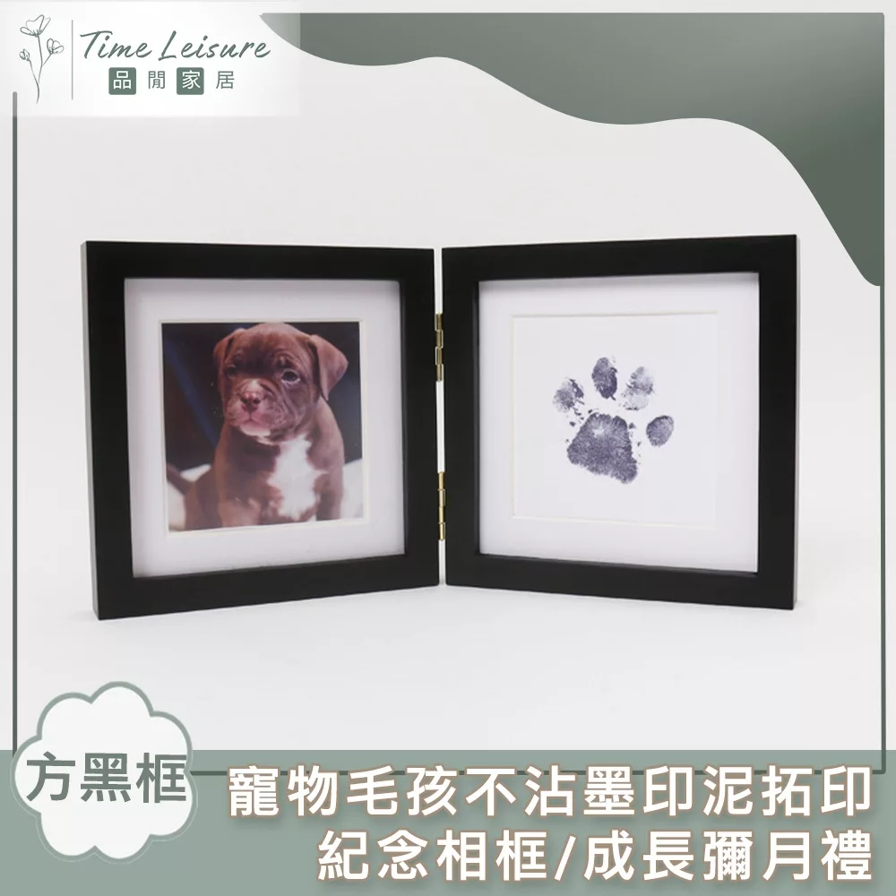 【Time Leisure 品閒】寵物毛孩不沾墨印泥拓印紀念相框/成長彌月禮(方黑框)