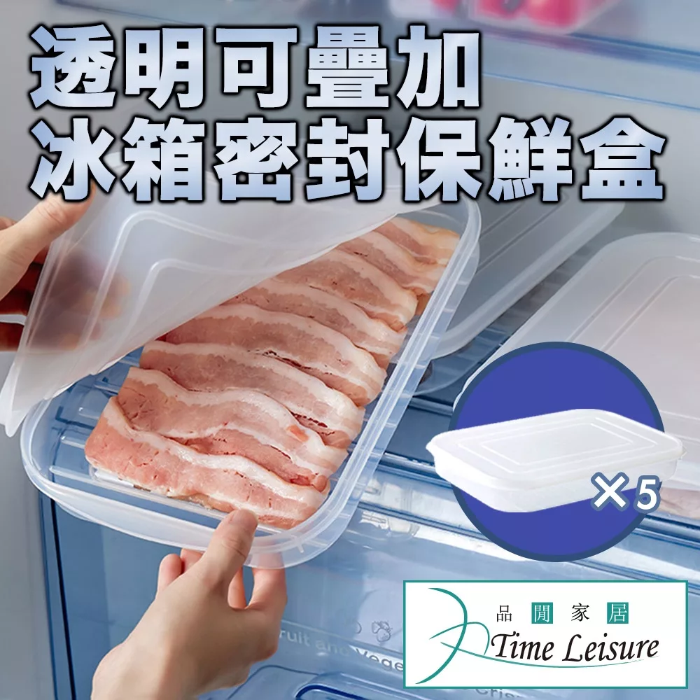 / 【Time Leisure 品閒】日式透明可疊加冰箱冷凍生鮮密封保鮮盒 5入