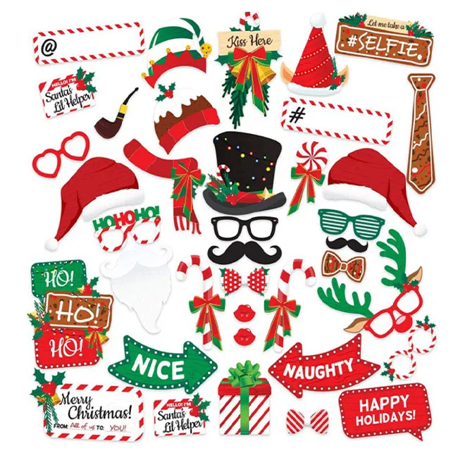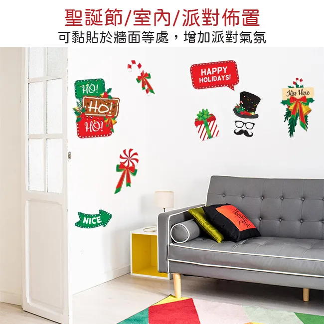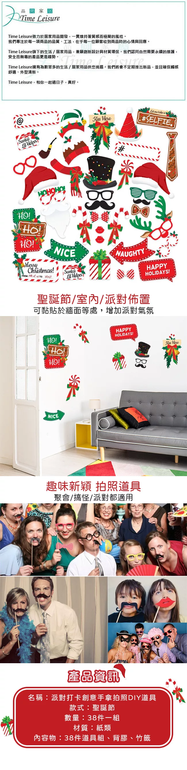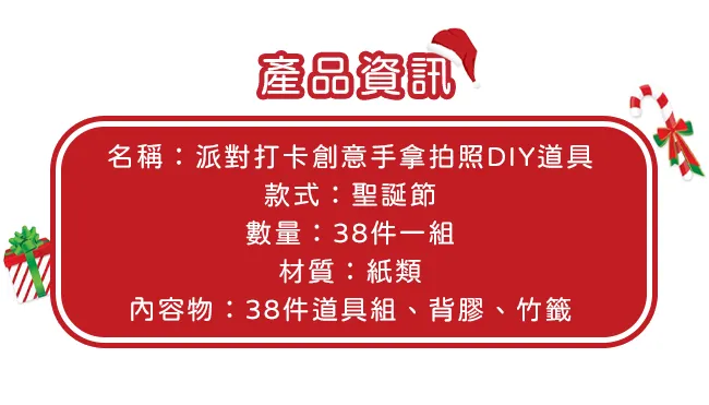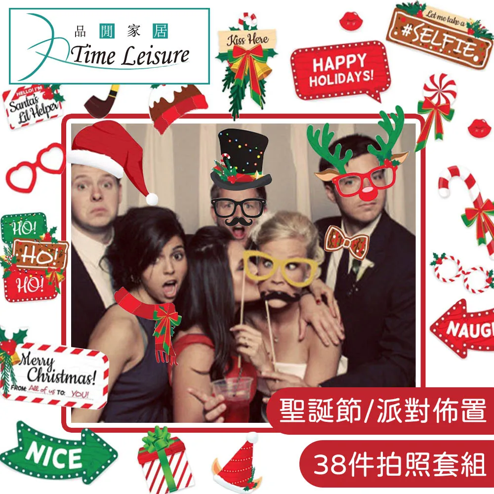 【Time Leisure 品閒】派對打卡創意手拿拍照道具(聖誕節38件套組)