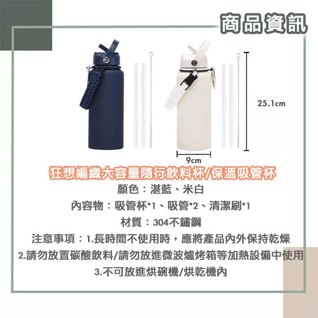 【Time Leisure 品閒】狂想編織大容量隨行飲料杯/保溫吸管杯 1000ml 數量
