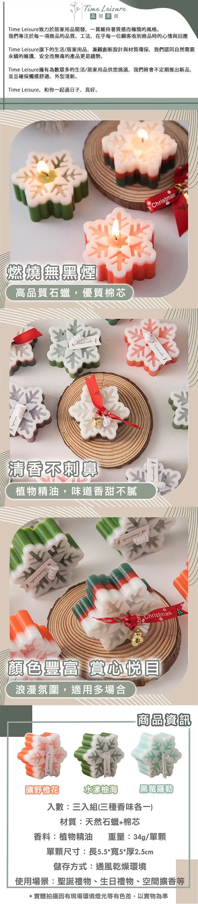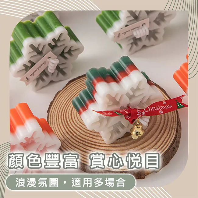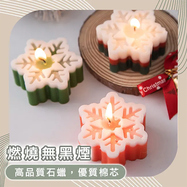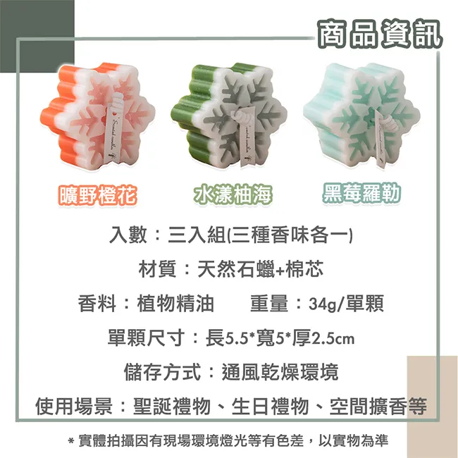 【Time Leisure 品閒】聖誕節交換禮物植物精油香氛雪花蠟燭 暖心三入組