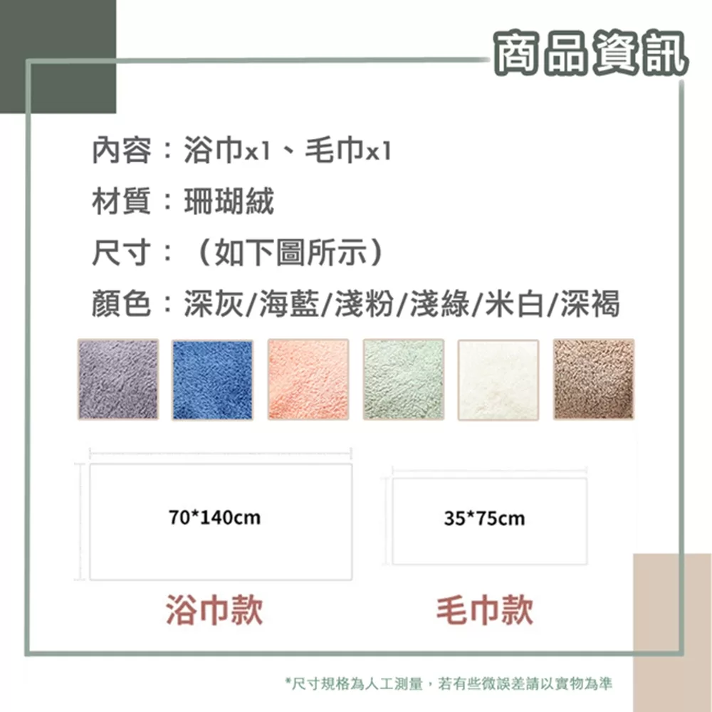 內容物:浴巾款*1+毛巾款*1