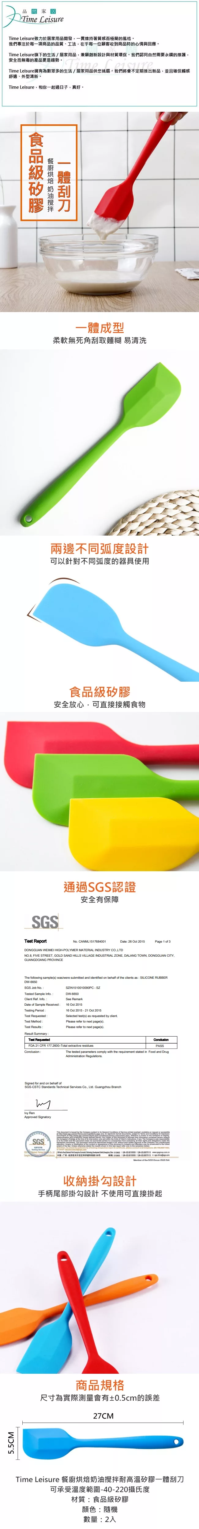 【Time Leisure 品閒】餐廚烘焙奶油攪拌耐高溫矽膠一體刮刀 2入/顏色隨機