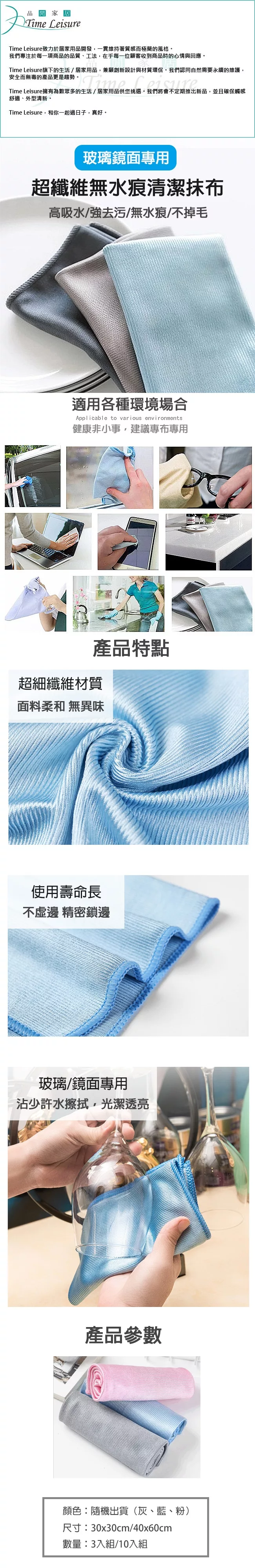 【Time Leisure 品閒】Time Leisure 超纖維玻璃鏡面專用無水痕清潔抹布 40x60cm 3入組 數量