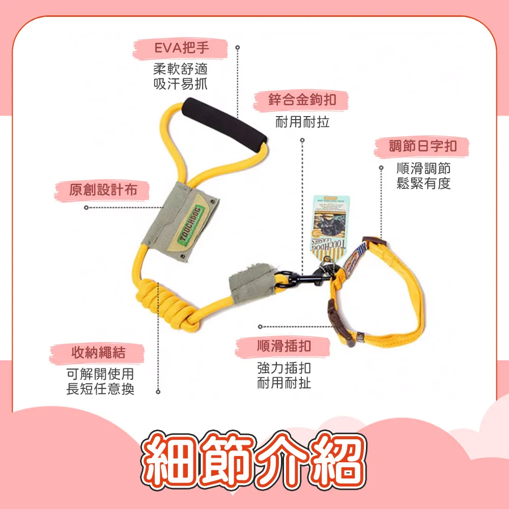 / 【TOUCHDOG超級狗】攀岩系列 可調節經典項圈牽繩套組(S)