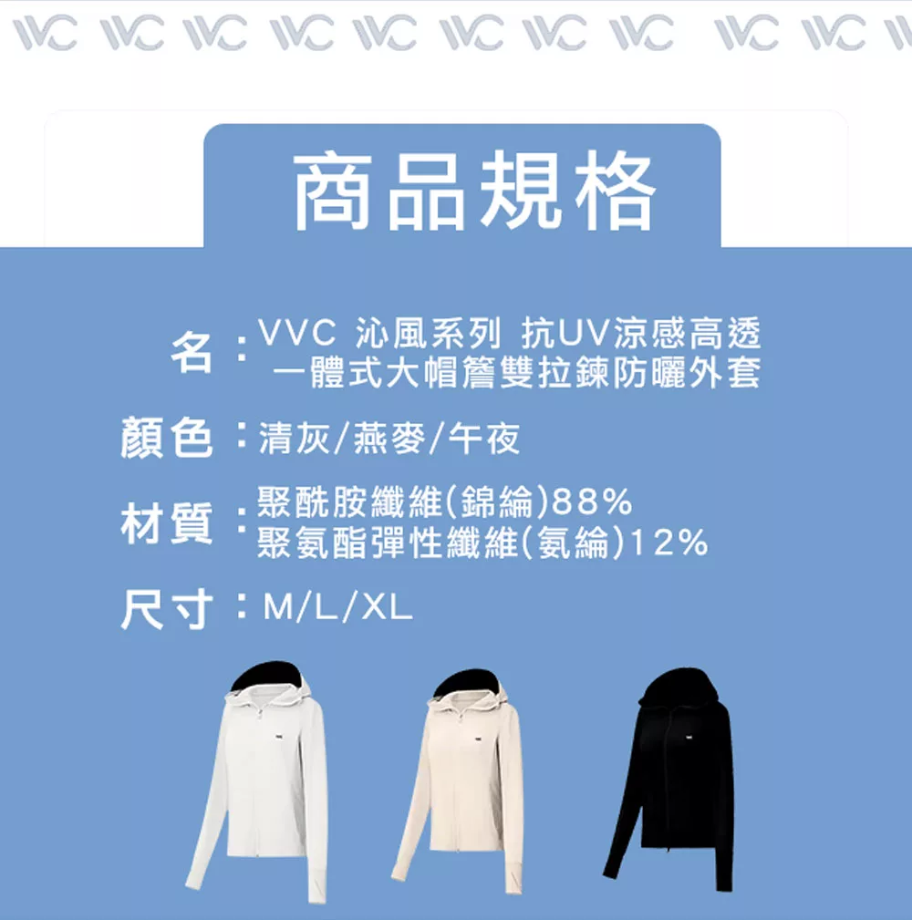 【VVC】沁風系列 抗UV涼感高透 一體式大帽簷雙拉鍊防曬外套