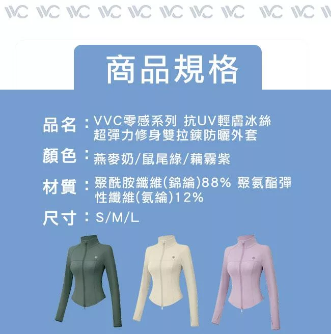 / 【VVC】零感系列 抗UV輕膚冰絲 超彈力修身 雙拉鍊防曬外套
