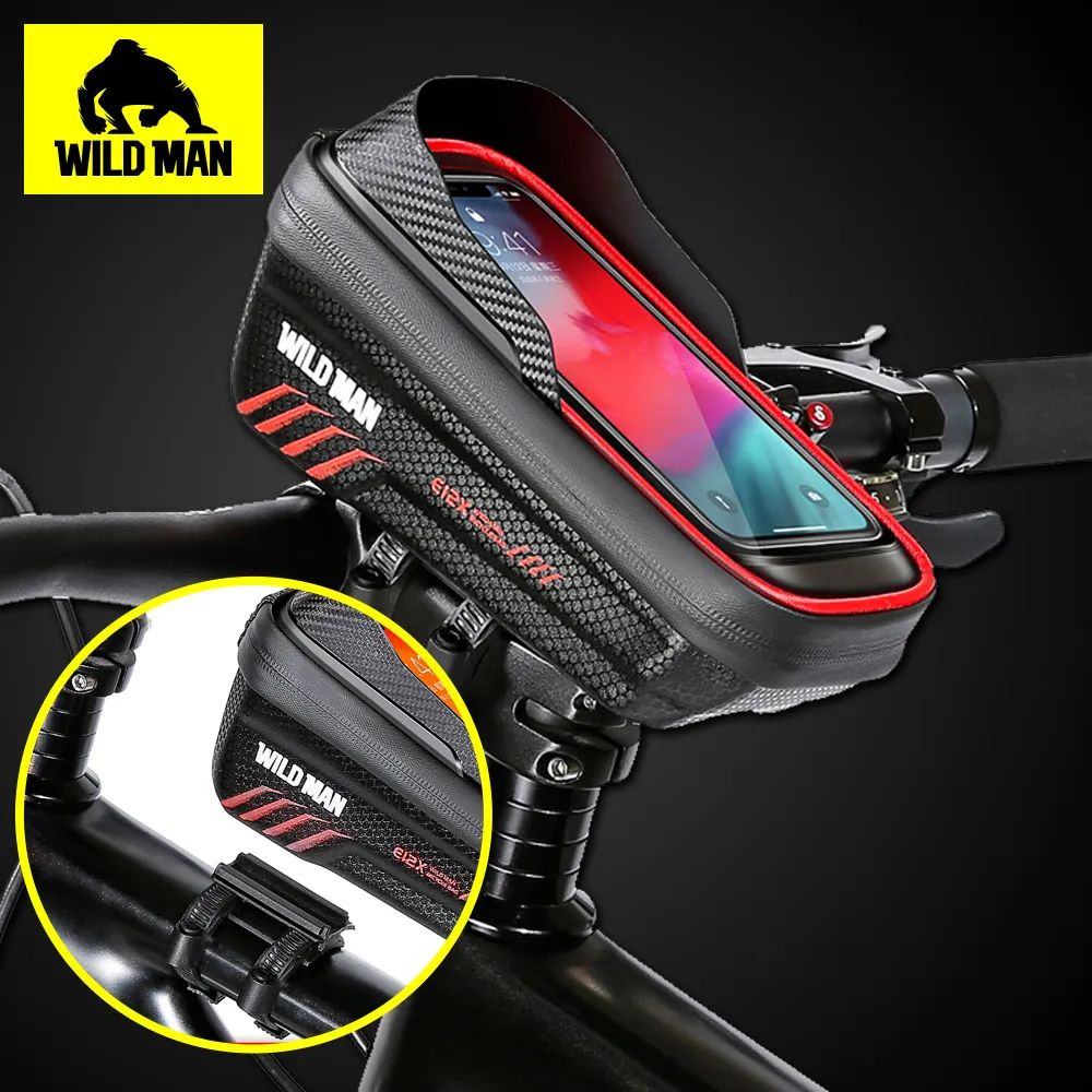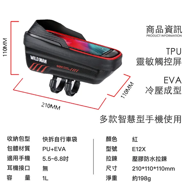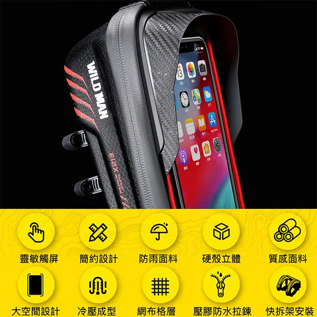 【WILD MAN】快拆自行車前梁龍頭袋 可觸控手機遮光硬殼防水收納包1L