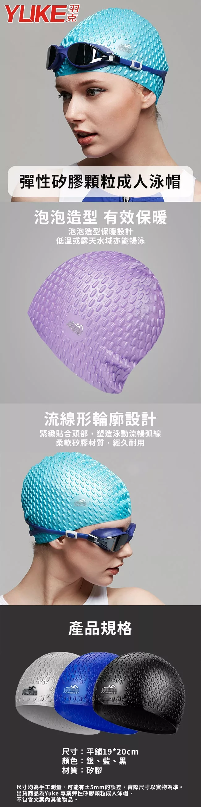 / 【Yuke】專業彈性矽膠顆粒成人泳帽