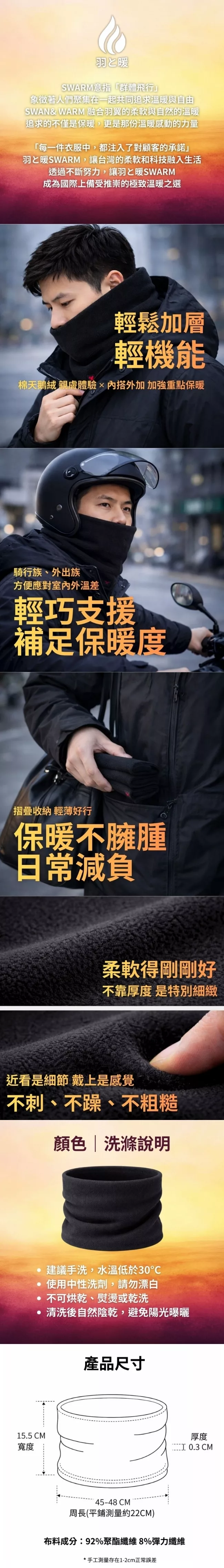 / 羽和暖SWARM 棉天鵝絨輕量親膚秋冬保暖防風機能騎行圍脖頭巾