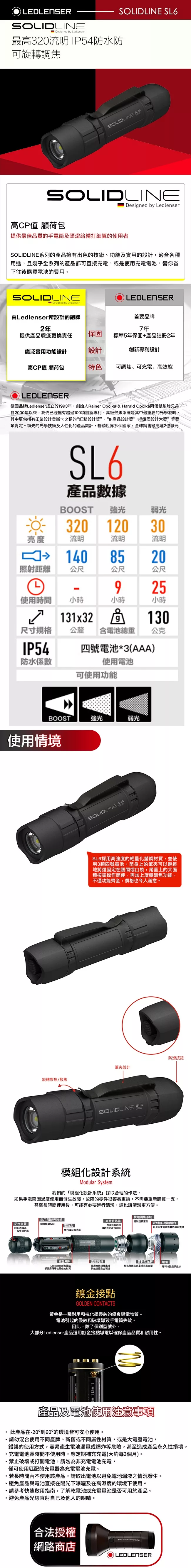 【德國SOLIDLINE】SL6塑鋼可調焦手電筒