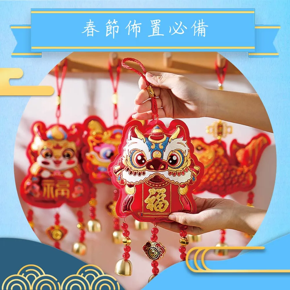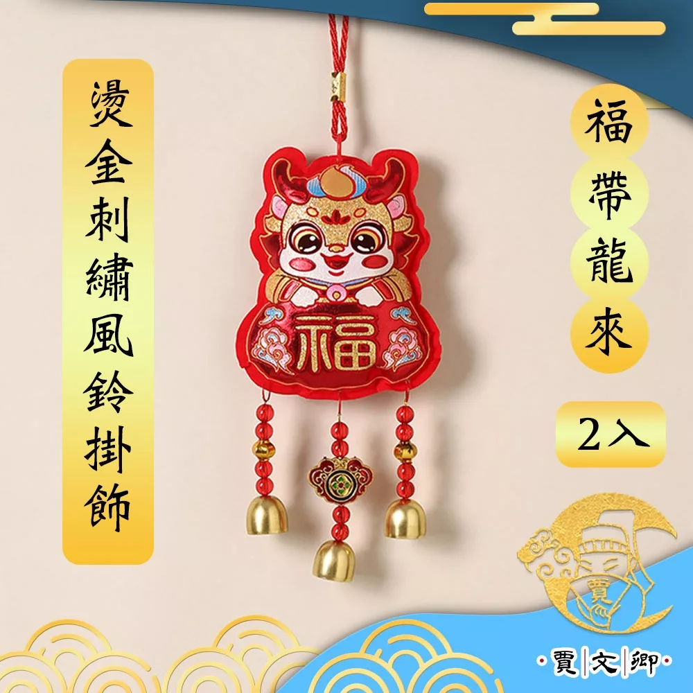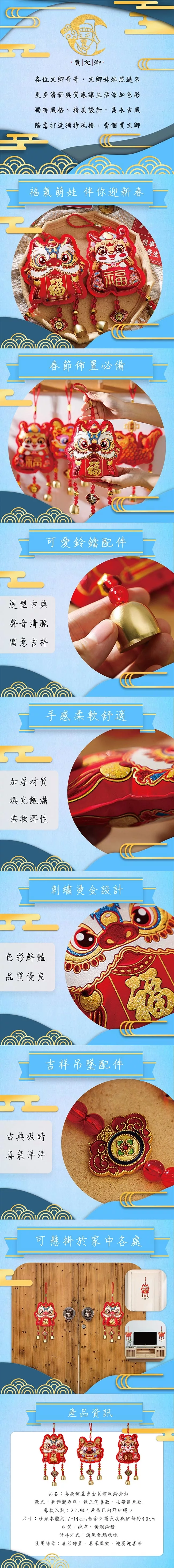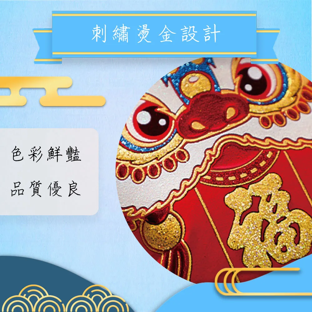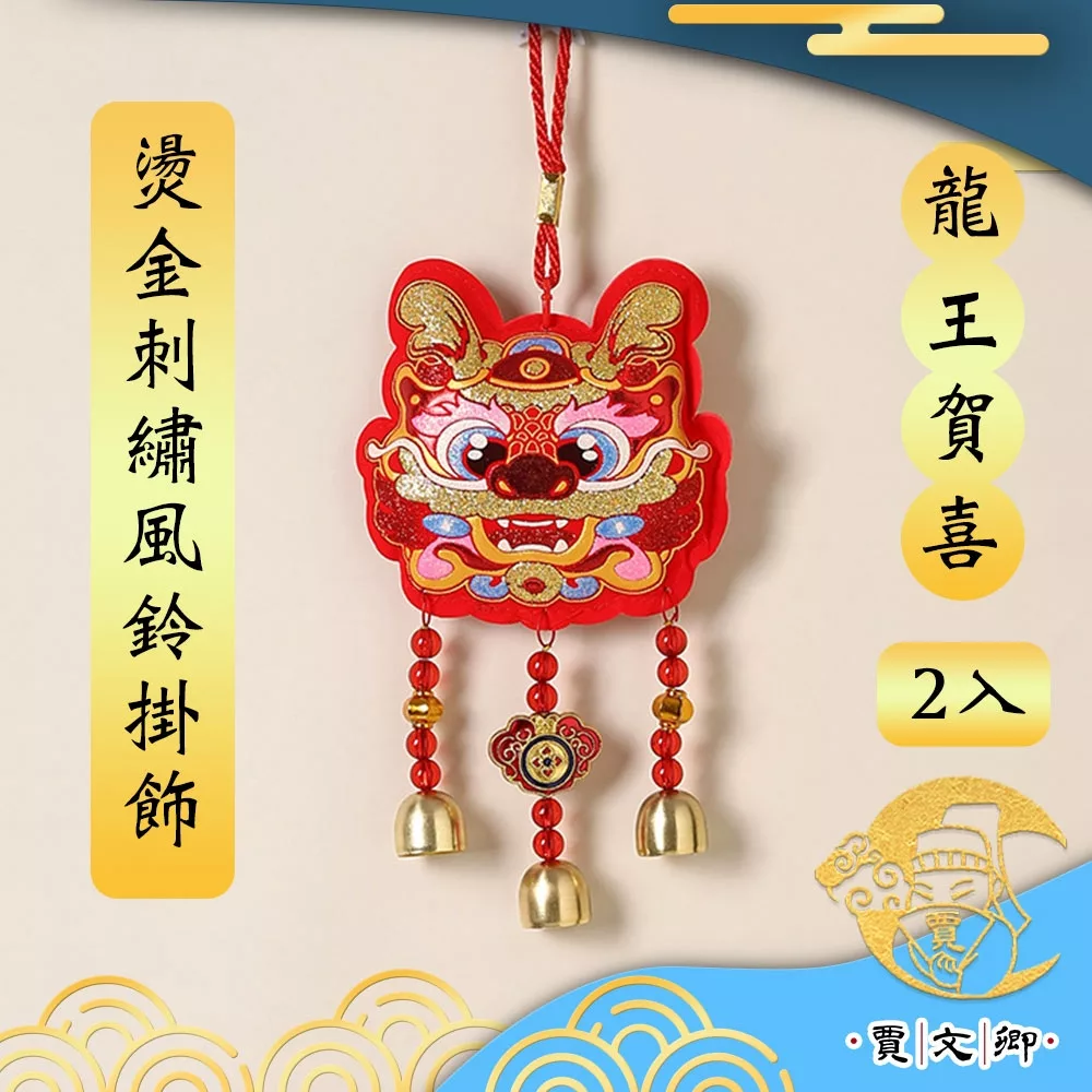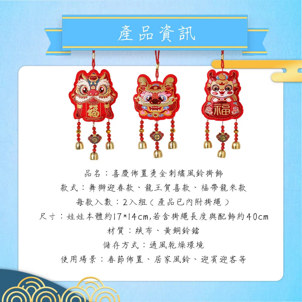 【賈文卿】喜慶佈置燙金刺繡風鈴掛飾 舞獅迎春款 兩入組 數量