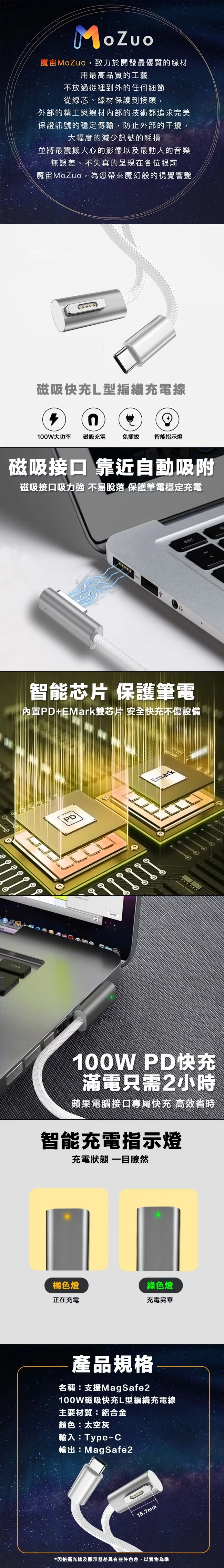 磁吸接口,靠近自動吸附 智能芯片,安全快充不傷設備 100WPD快充,2小時滿電