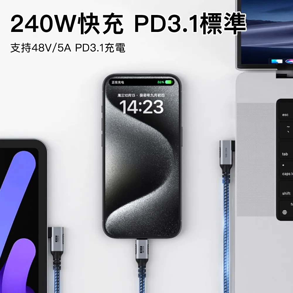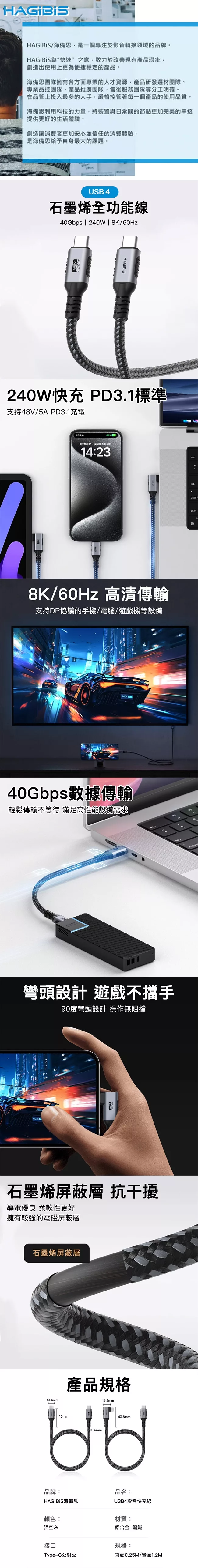 【HAGiBiS海備思】USB4 Type-C 公對公 8K 240W影音快充線 直頭25cm