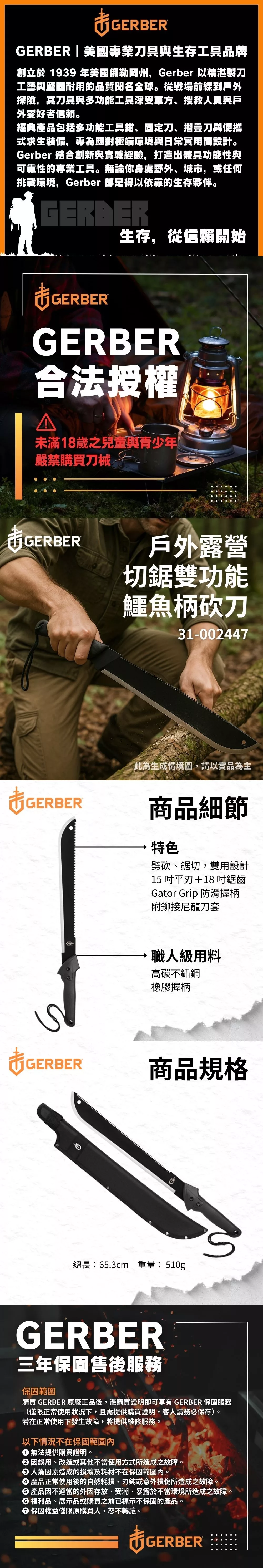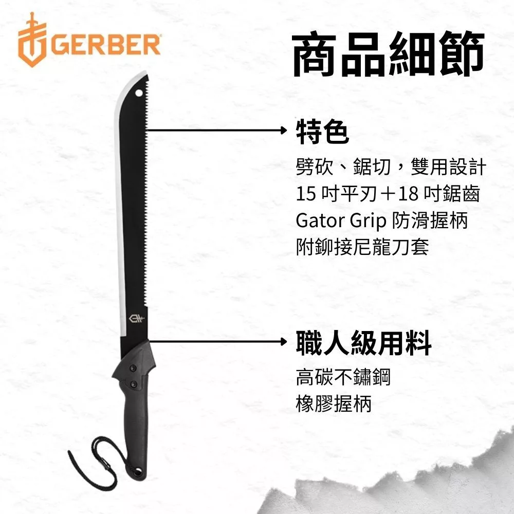 Gerber Gator 戶外露營切鋸雙功能鱷魚柄掃刀-31-002447