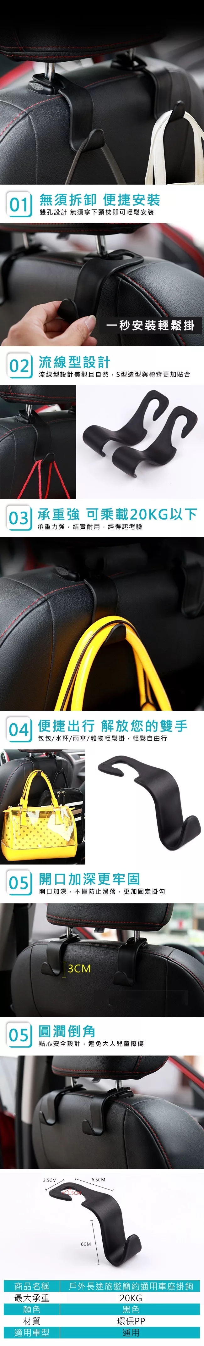 ◆流線型設計,與椅背更貼合 ◆包包/水杯/雨傘/雜物輕鬆掛 ◆開口加深、防滑不掉落